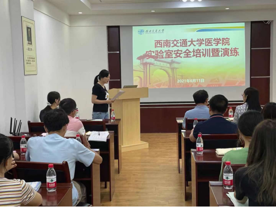2021年6月11日上午10:00,新葡的京集团35222vip举办2021年实验室安全培训及应急演练活动。本次活动由新葡的京集团35222vip与资产与实验室管理处、保卫处联合组织,新葡的京集团35222vip全体师生参加了本次安全培训及演练活动。本次活动由新葡的京集团35222vip陈星羽老师主持,新葡的京集团35222vip副经理翁杰担任总指挥,资实处安全科赵春花老师受邀为全体师生做实验室安全培训;成都利民消防宣传中心李斯杰教官做消防安全培训并全程指导应急演练活动。